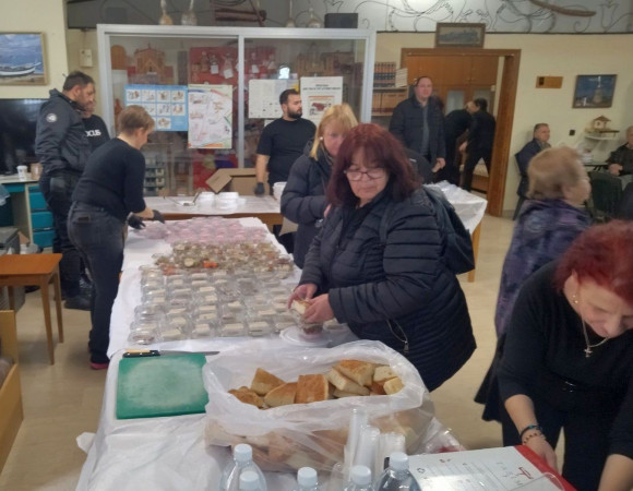 Εξαιτίας της έντονης βροχόπτωσης, που έπεφτε από νωρίς το πρωί της ημέρας, ο Δήμος Κορδελιού - Ευόσμου άνοιξε τους χώρους τριών ΚΑΠΗ, όπου μοιράστηκαν σε πολίτες παραδοσιακά εδέσματα, μεταξύ των οποίων λαγάνες, φασολάδα, τουρσί και ταραμάς.