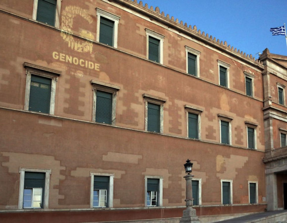Στο κτίριο της Βουλής προβλήθηκε το λογότυπο με το αρχικό γράμμα της αγγλικής λέξης Genocide, το γράμμα G, ως ένδειξη πένθους για τα θύματα της Γενοκτονίας.
