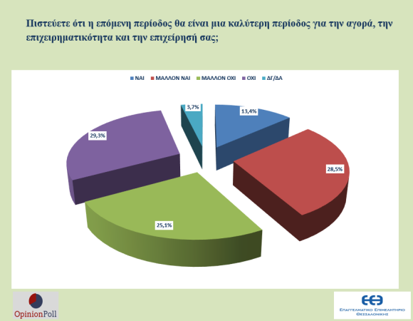 Ιδιαίτερο ενδιαφέρον παρουσιάζουν τα συμπεράσματα της μεγάλης έρευνας της OPINIONPOLL για λογαριασμό του Επαγγελματικού Επιμελητηρίου Θεσσαλονίκης (Ε.Ε.Θ.), με στόχο την διερεύνηση των προβλημάτων, των αναγκών και των προοπτικών των Μικρομεσαίων Επιχειρήσεων.