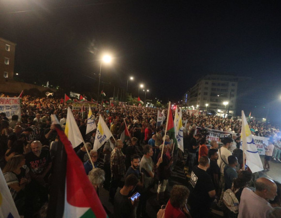 Πλήθος κόσμου συμμετείχε σήμερα το βράδυ, Κυριακή, στο συλλαλητήριο που διοργανώθηκε στο Σύνταγμα στην Αθήνα, υπέρ των Παλαιστινίων.