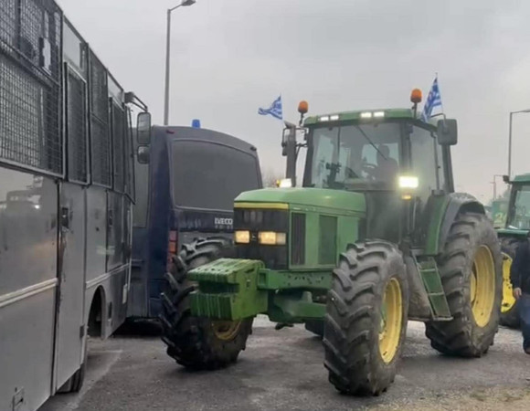Στόχος είναι να φτάσουν στο τελωνείο του Προμαχώνα και να το αποκλείσουν. Τα τρακτέρ έχουν περάσει μπροστά από το αστυνομικό μπλόκο και συνεχίζουν την πορεία τους.