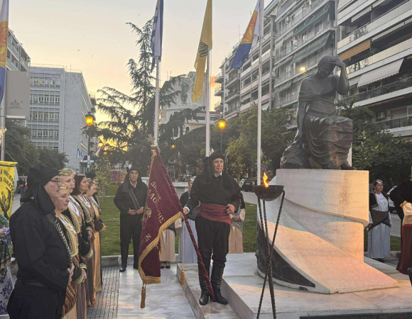 Σε έντονα συγκινησιακά φορτισμένο κλίμα μέλη ποντιακών σωματείων παραδοσιακές φορεσιές συγκεντρώθηκαν στην πλατεία Αγίας Σοφίας για να αποτίνουν φόρο τιμής στα 353.000 θύματα της Γενοκτονίας.