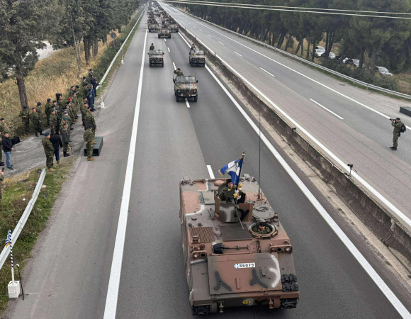 Η δοκιμαστική παρέλαση ξεκίνησε με τα δίκυκλα της Στρατονομίας, ενώ στη συνέχεια ακολούθησαν τα μηχανοκίνητα τμήματα. Κάτοικοι της περιοχής βρέθηκαν από νωρίς στην εθνική οδό για να απαθανατίσουν τις εντυπωσιακές εικόνες με τα κινητά τους τηλέφωνα.