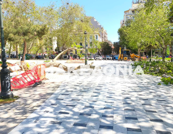Αυτή την ώρα γίνεται απομάκρυνση των κλαδιών και η αποκατάσταση του χώρου από υπάλληλο του Δήμου Θεσσαλονίκης.