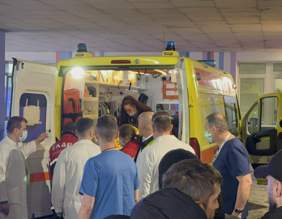 Στο Νοσοκομείο Παπαγεωργίου έφτασαν λίγο μετά τις 14:00 το μεσημέρι οι δύο τραυματίες που μεταφέρθηκαν με αεροσκάφος του ΕΚΑΒ από τη Ρουμανία στο Αεροδρόμιο «Μακεδονία».
