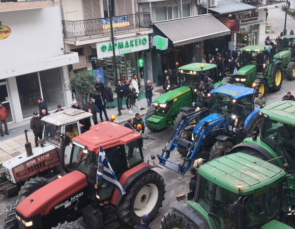 Τρίκαλα: Αγρότες διέσχισαν με τα τρακτέρ τους κεντρικούς δρόμους της πόλης